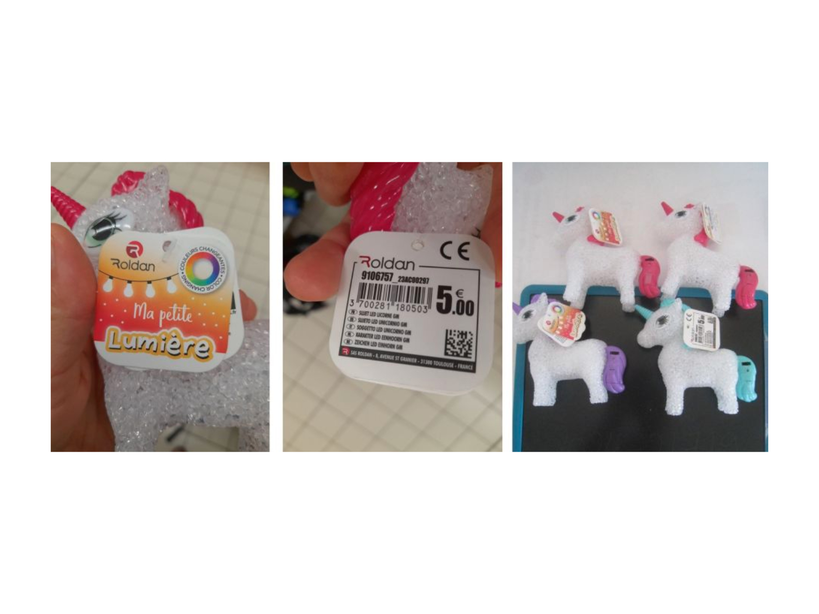 La licorne lumineuse détaillée ci-dessous est retirée du marché et un rappel auprès du consommateur est organisé car le produit n’est pas conforme à la législation sur la sécurité des jouets. En effet, il peut y avoir la présence de petites pièces détachées (corne et oreille), présentant un risque d’étouffement lorsqu’un petit enfant les ingère.